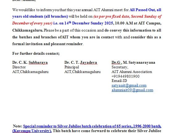 But in the past 2-3 years, a core group of AITians from different places of the world came together. And the first flyer inviting membership is sent to all AITians from this site.
